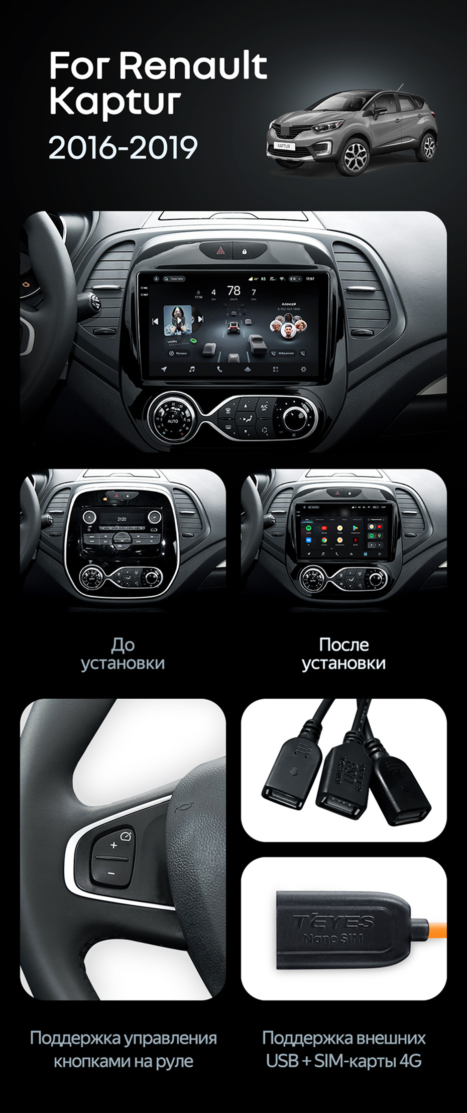 Штатная магнитола Teyes CC4L 6/64 Renault Kaptur (2016-2019) F1 - купить всего за 33 050 руб. в интернет-магазине в Иркутске Teyes.com.ru. ✓ Самый лучший выбор мультимедиа ✓ Лучшая замена штатному ГУ ✓ Тел. +7 (800) 775-31-74