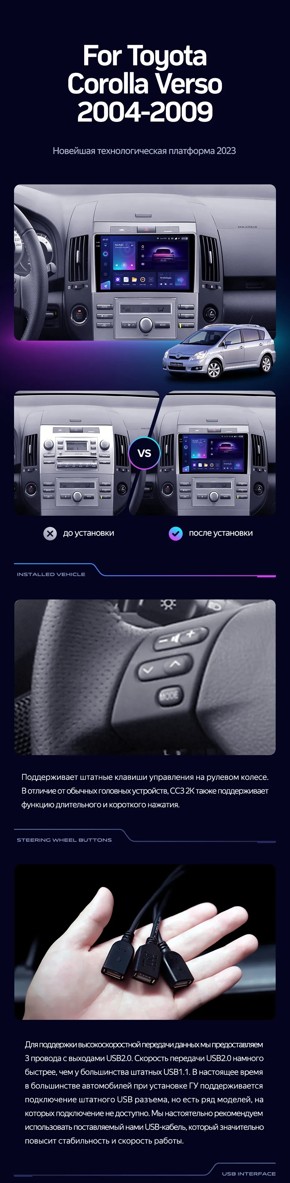 Штатная магнитола Teyes CC4L 6/64 Toyota Corolla Verso AR10 (2004-2009) F2 - купить всего за 30 500 руб. в интернет-магазине в Иркутске Teyes.com.ru. ✓ Самый лучший выбор мультимедиа ✓ Лучшая замена штатному ГУ ✓ Тел. +7 (800) 775-31-74