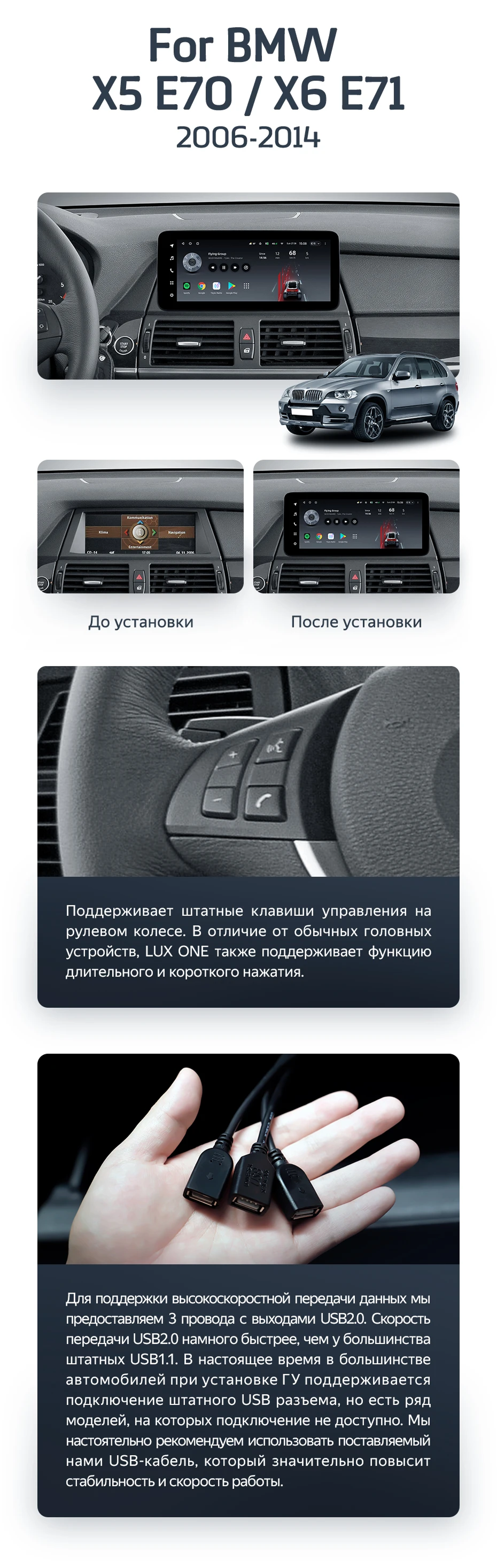 Штатная магнитола Teyes LUX ONE 4/64 BMW X5 E70 (CIC) (2006-2014) Universal - купить всего за 41 530 руб. в интернет-магазине в Иркутске Teyes.com.ru. ✓ Самый лучший выбор мультимедиа ✓ Лучшая замена штатному ГУ ✓ Тел. +7 (800) 775-31-74