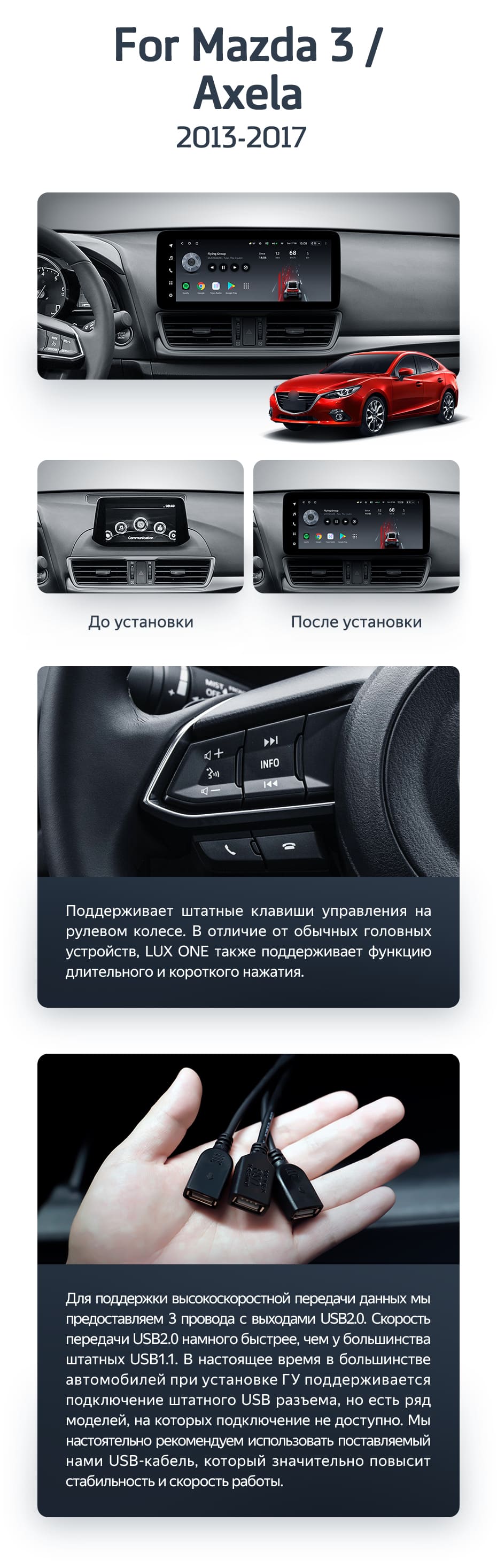 Штатная магнитола Teyes LUX ONE 4/64 Mazda Axela 3 (2013-2017) Тип-A Правый руль - купить всего за 39 460 руб. в интернет-магазине в Иркутске Teyes.com.ru. ✓ Самый лучший выбор мультимедиа ✓ Лучшая замена штатному ГУ ✓ Тел. +7 (800) 775-31-74