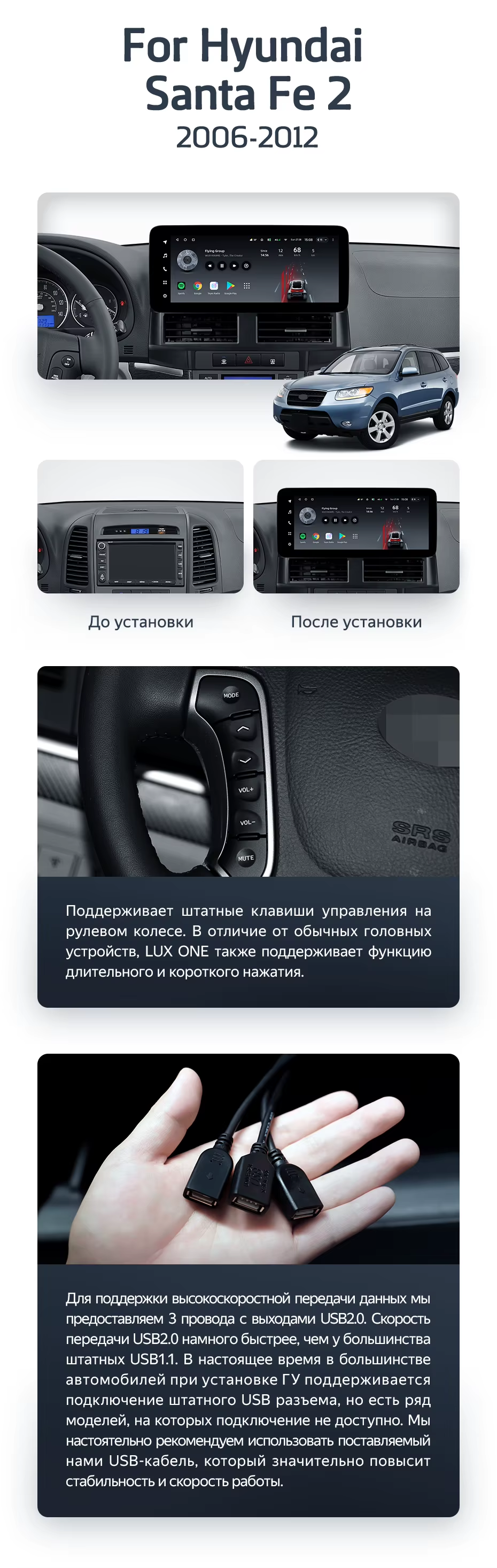 Штатная магнитола Teyes LUX ONE 6/128 Hyundai Santa Fe 2 (2006-2012) - купить всего за 52 000 руб. в интернет-магазине в Иркутске Teyes.com.ru. ✓ Самый лучший выбор мультимедиа ✓ Лучшая замена штатному ГУ ✓ Тел. +7 (800) 775-31-74