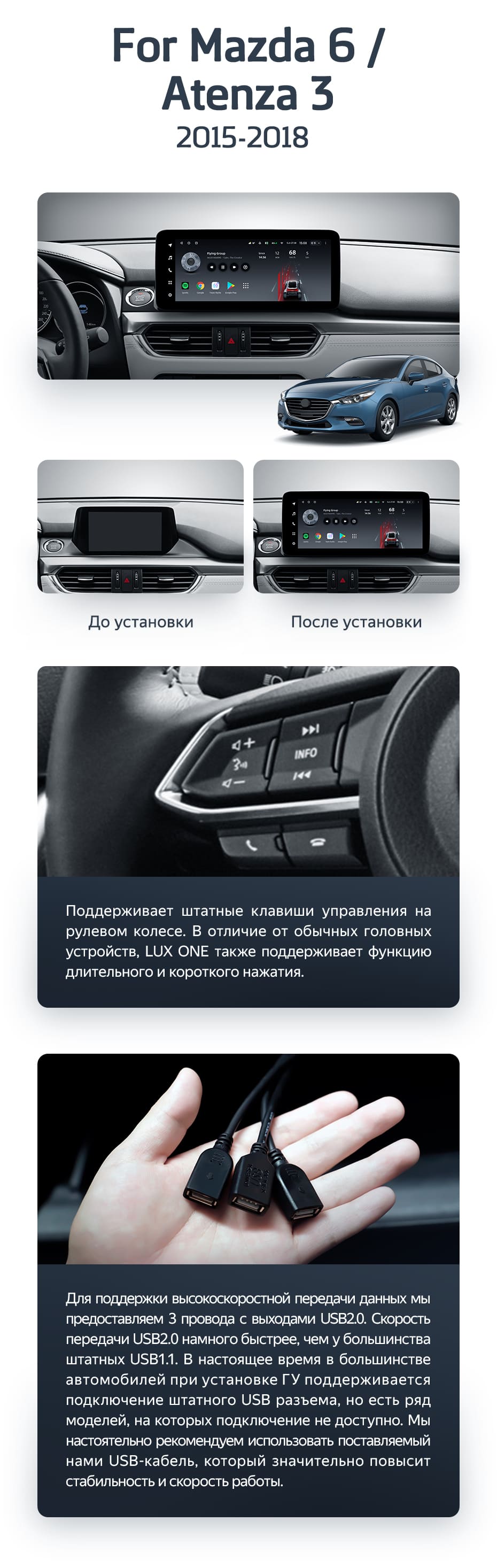 Штатная магнитола Teyes LUX ONE 6/128 Mazda Atenza 3 (2015-2018) Тип-A Правый руль - купить всего за 47 700 руб. в интернет-магазине в Иркутске Teyes.com.ru. ✓ Самый лучший выбор мультимедиа ✓ Лучшая замена штатному ГУ ✓ Тел. +7 (800) 775-31-74