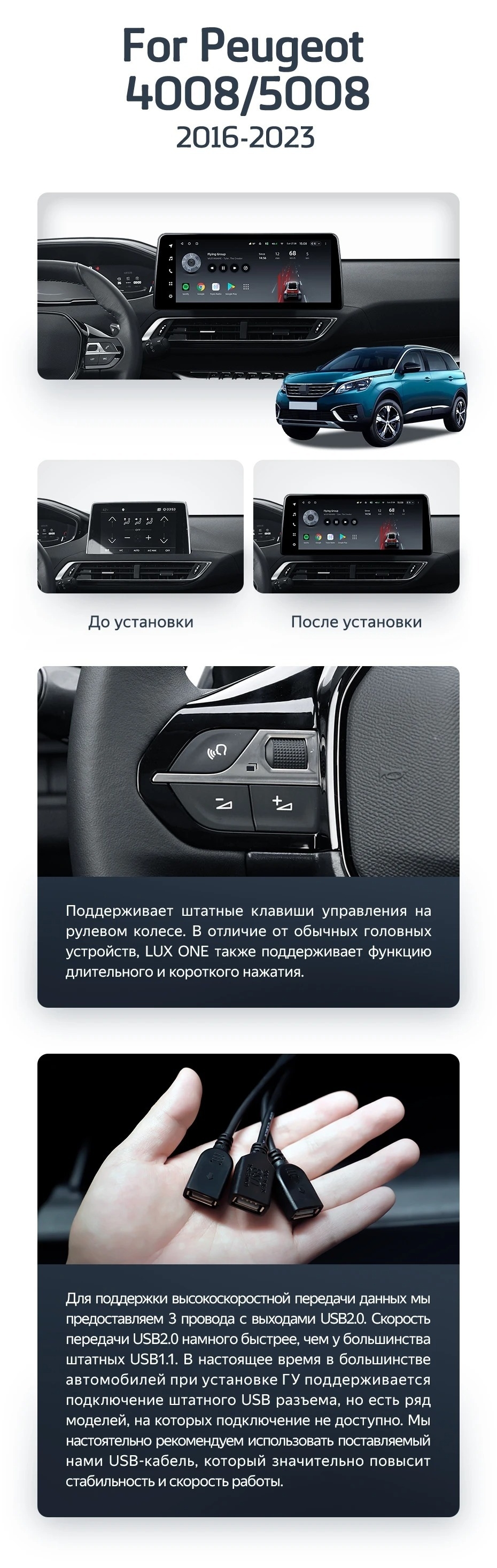Штатная магнитола Teyes LUX ONE 6/128 Peugeot 4008 (2016-2023) - купить всего за 48 400 руб. в интернет-магазине в Иркутске Teyes.com.ru. ✓ Самый лучший выбор мультимедиа ✓ Лучшая замена штатному ГУ ✓ Тел. +7 (800) 775-31-74