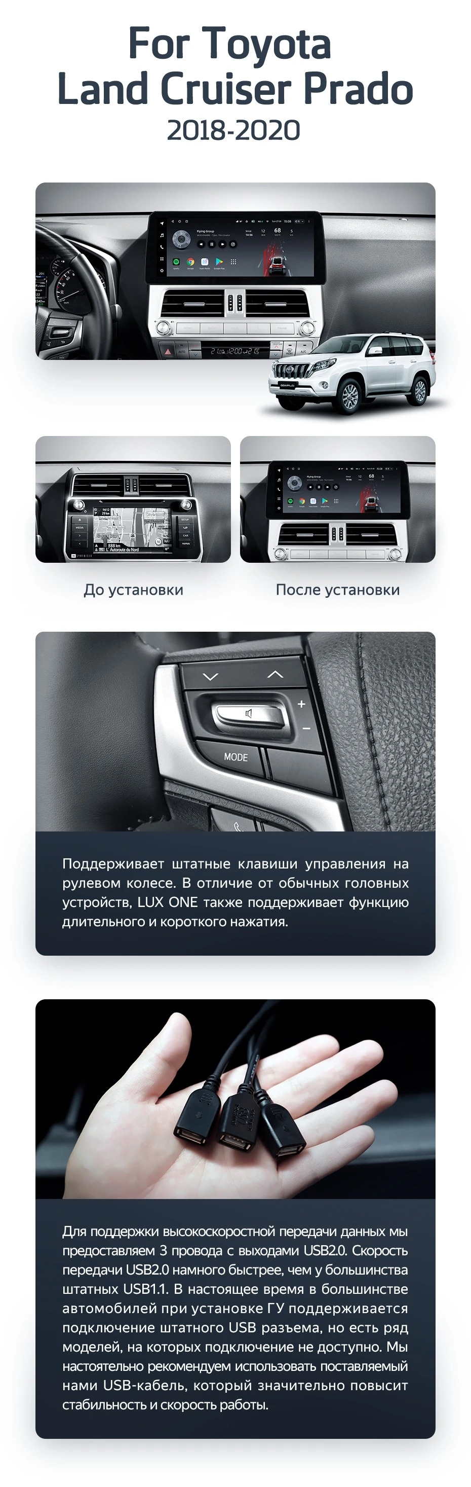 Штатная магнитола Teyes LUX ONE 6/128 Toyota Land Cruiser Prado 150 (2018-2020) - купить всего за 50 500 руб. в интернет-магазине в Иркутске Teyes.com.ru. ✓ Самый лучший выбор мультимедиа ✓ Лучшая замена штатному ГУ ✓ Тел. +7 (800) 775-31-74