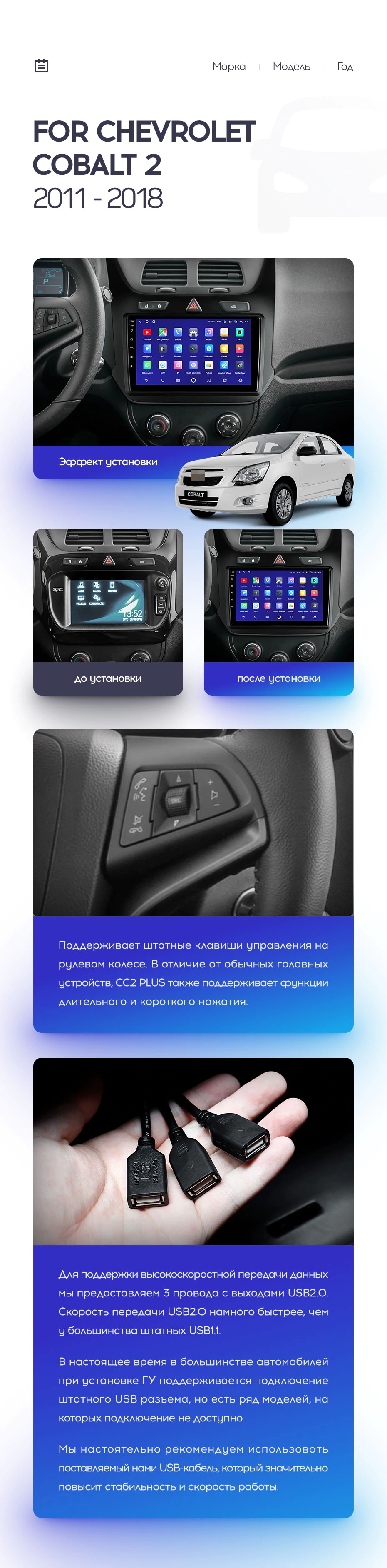 Полный комплект установки магнитолы Teyes с рамкой и проводкой можно выбрать в каталоге штатных магнитол Chevrolet Cobalt 2 (2011-2018).