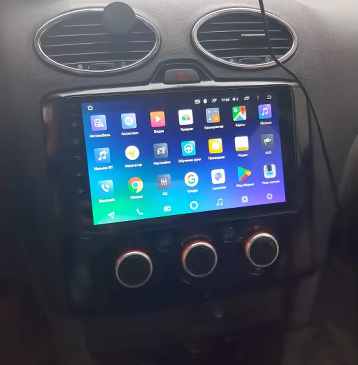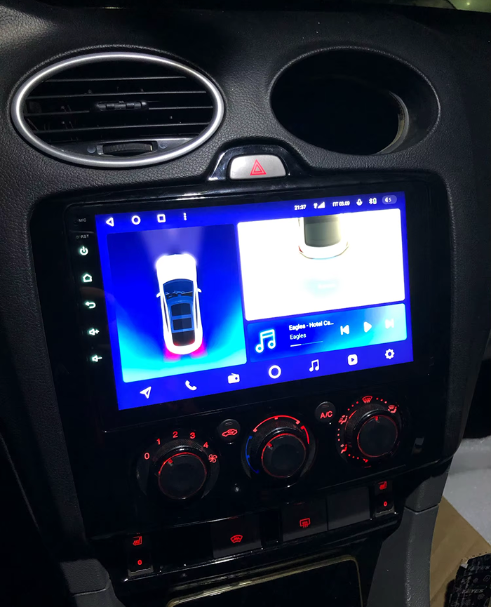 Готовый установочный комплект для магнитолы Ford Focus 2 (2004-2011) (F2 - климат-контроль) (чёрная) 9 дюймов в штатное место, включает переходную рамку и проводку.
