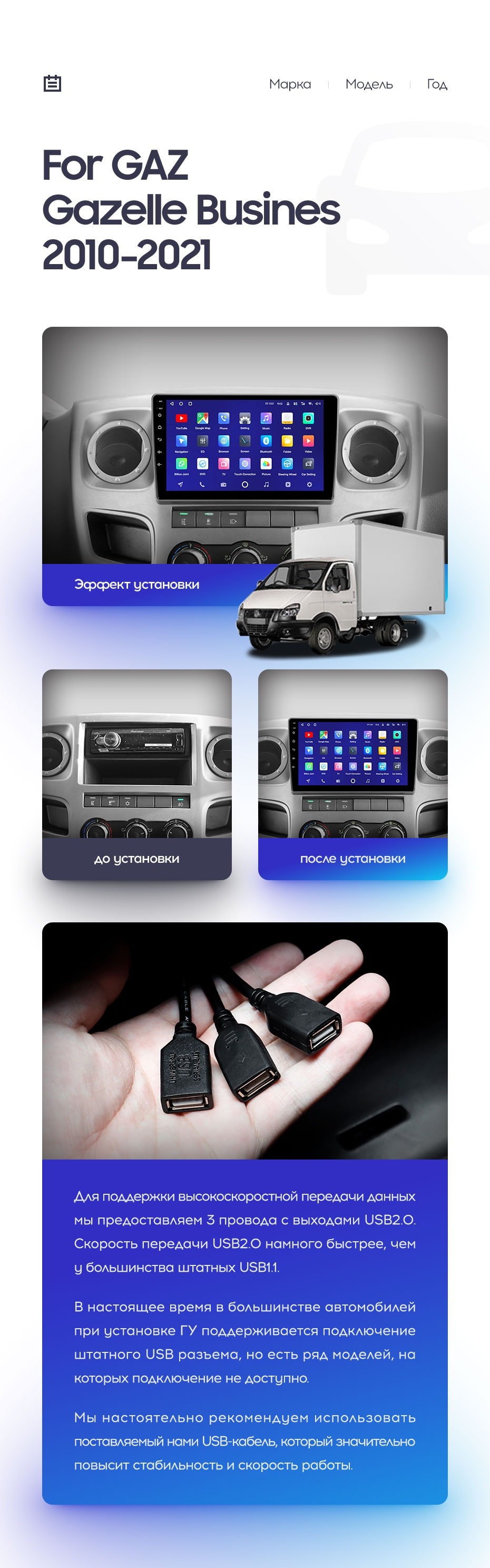 Полный комплект установки магнитолы Teyes с рамкой и проводкой можно выбрать в каталоге штатных магнитол GAZ Gazelle Busines (2010-2021).