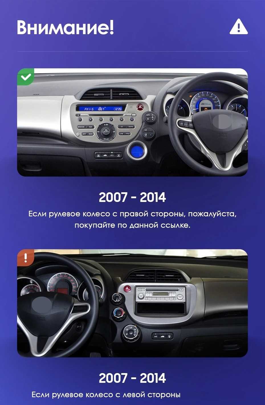 Полный комплект установки магнитолы Teyes с рамкой и проводкой можно выбрать в каталоге штатных магнитол Honda Fit GE GP GE (2007-2014).