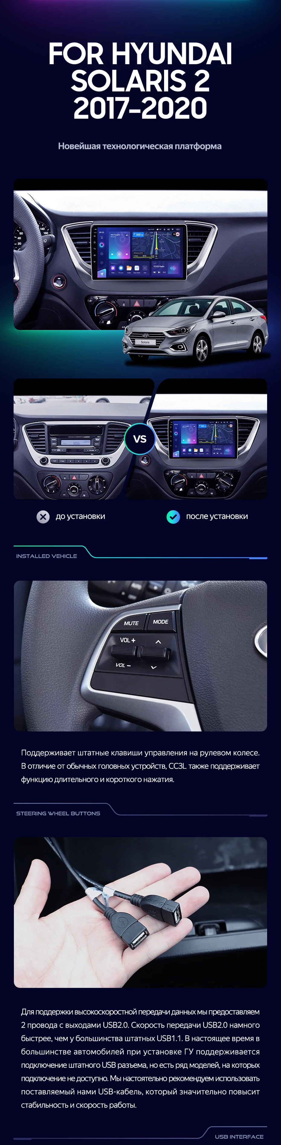 Готовый установочный комплект для магнитолы Hyundai Solaris 2 (2017-) (черный матовый) (A - без штатной камеры) 9 дюймов в штатное место, включает переходную рамку и проводку.