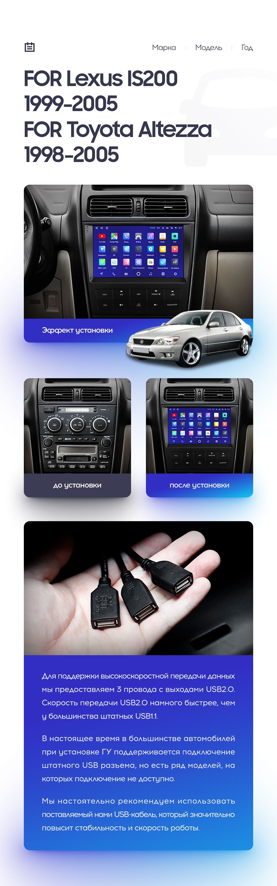 Полный комплект установки магнитолы Teyes с рамкой и проводкой можно выбрать в каталоге штатных магнитол Lexus IS200 XE10 (1999-2005).