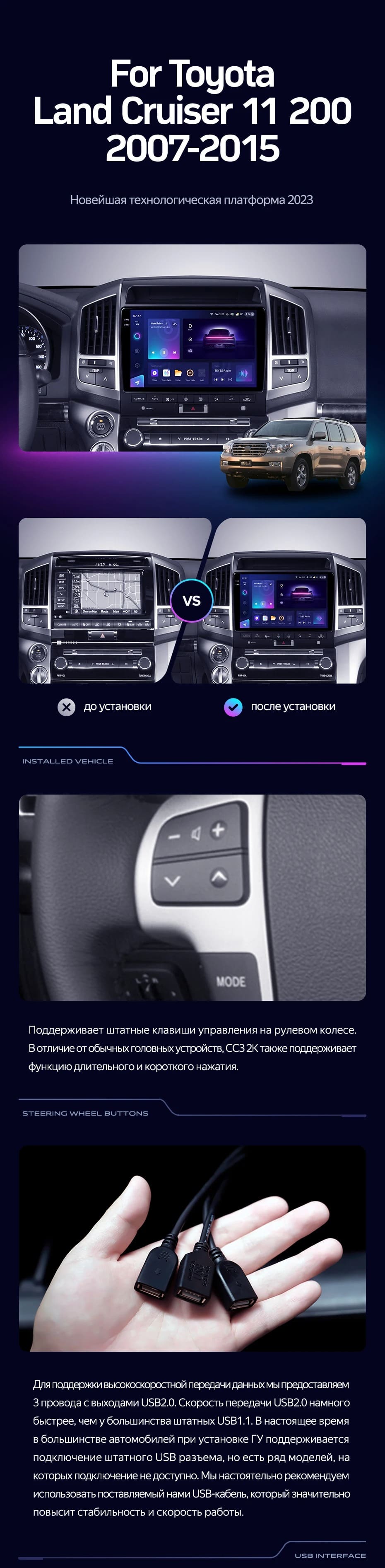 Полный комплект установки магнитолы Teyes с рамкой и проводкой можно выбрать в каталоге штатных магнитол Toyota Land Cruiser 11 200 (2007-2015).