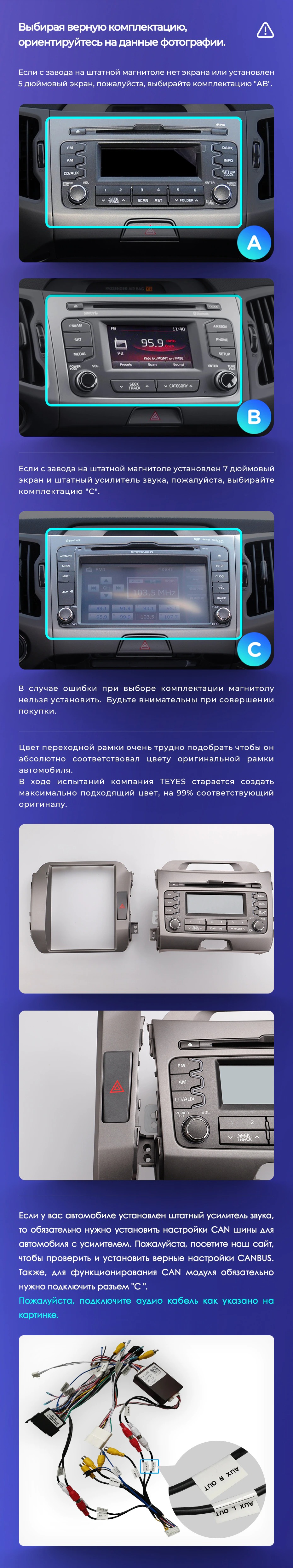 Полный комплект установки магнитолы Teyes с рамкой и проводкой можно выбрать в каталоге штатных магнитол Kia Sportage 3 SL 2010-2016.